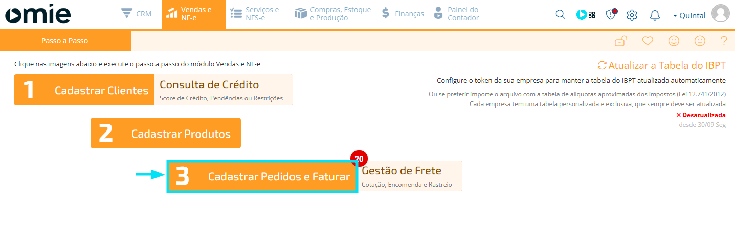 1) Antes de tudo, acesse o módulo de Vendas e NF-e: