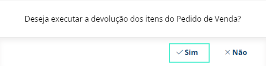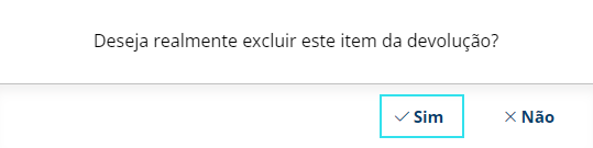 3) O sistema apresentará uma mensagem de confirmação para você. Clique no botão "Sim" para prosseguir com a devolução: