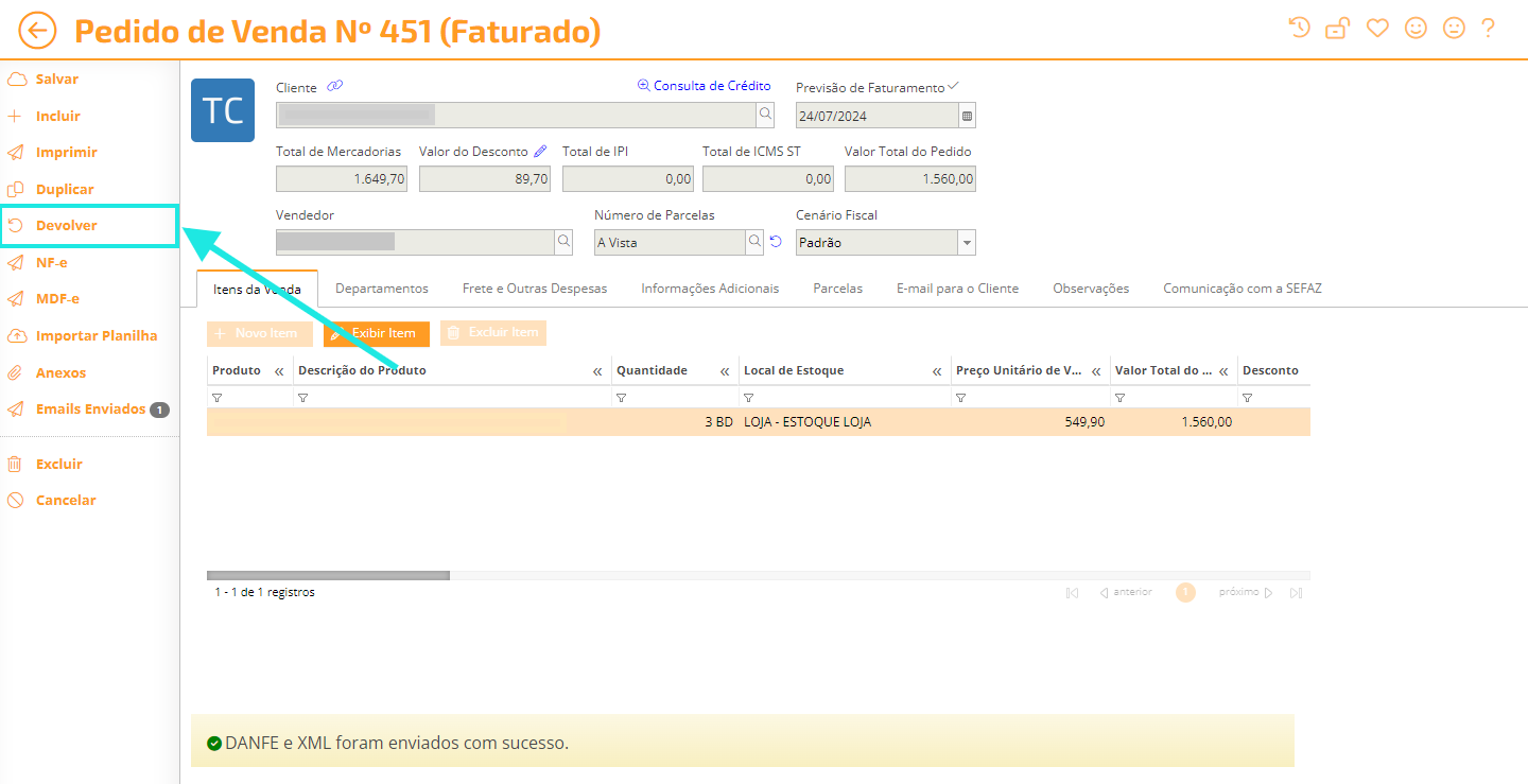 Nesse artigo, descubra como criar e emitir uma Devolução Parcial a partir de um Pedido de Venda.