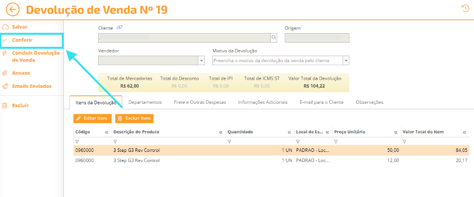 Após o preenchimento das informações na Devolução, você pode verificar se todas as informações estão corretas, para isso, siga os passos abaixo: