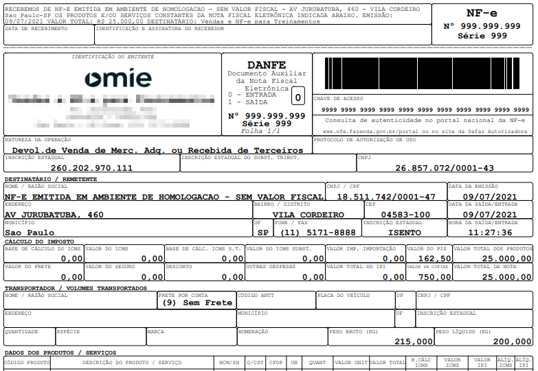 Segue procedimento para devolução de venda no sistema omie quando o cliente emite nota fiscal