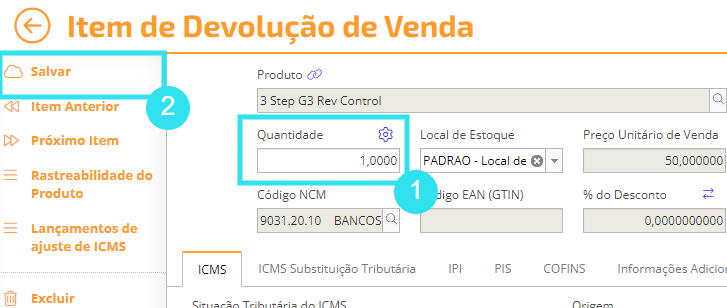 2) Por padrão, a Devolução de Venda puxa os itens conforme estão no Pedido de Venda.