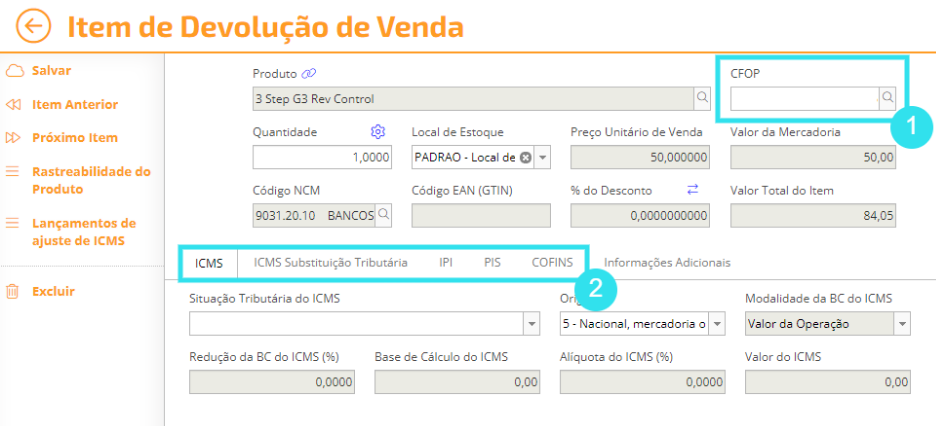6) Feito isso, será necessário preencher os Impostos da Devolução.