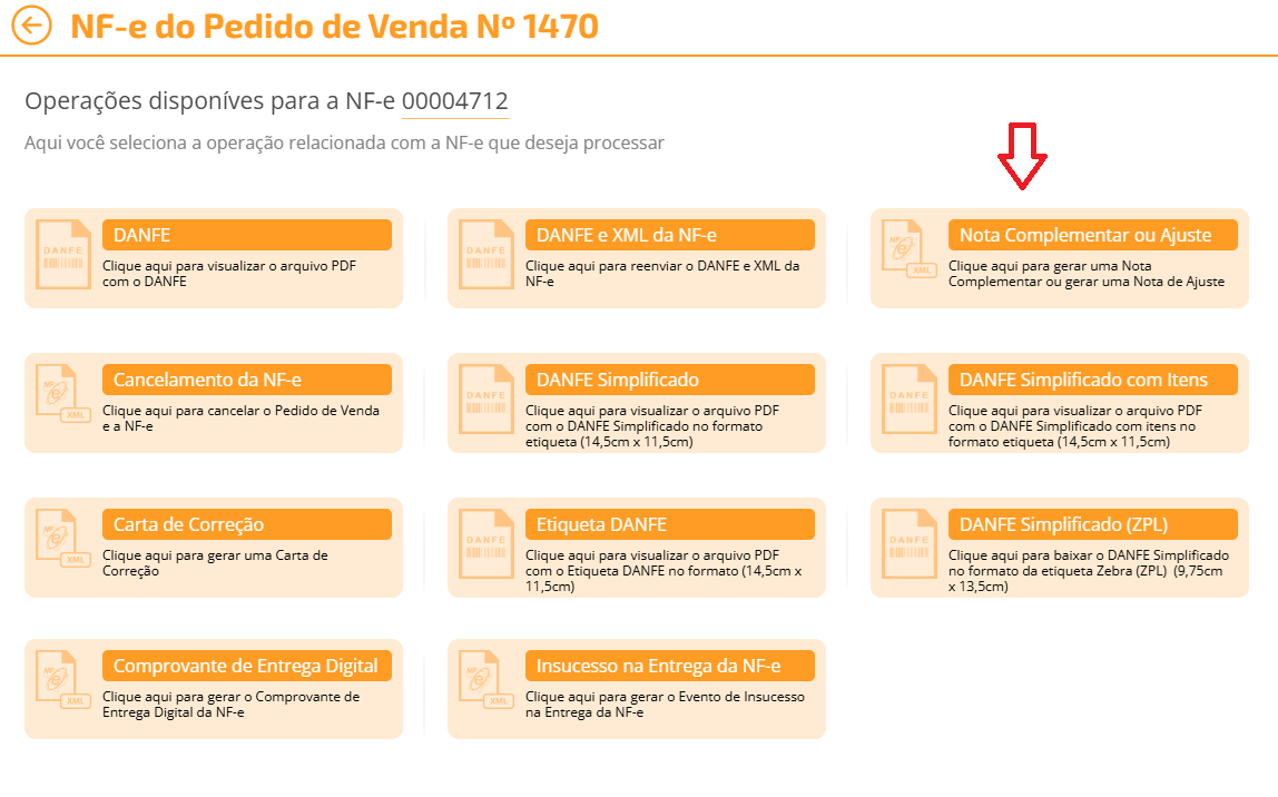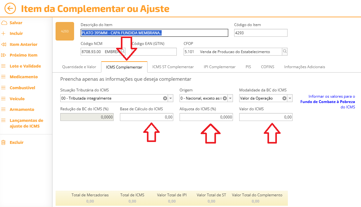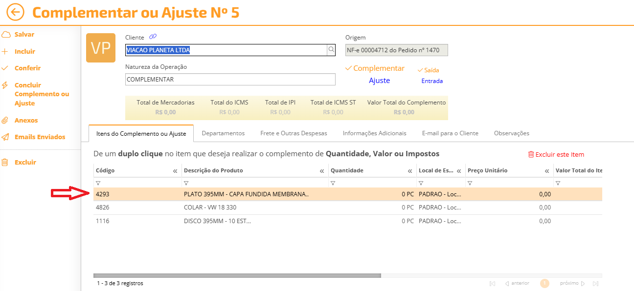 Procedimento de emissão de nota fiscal complementar de ICMS no sistema OMIE