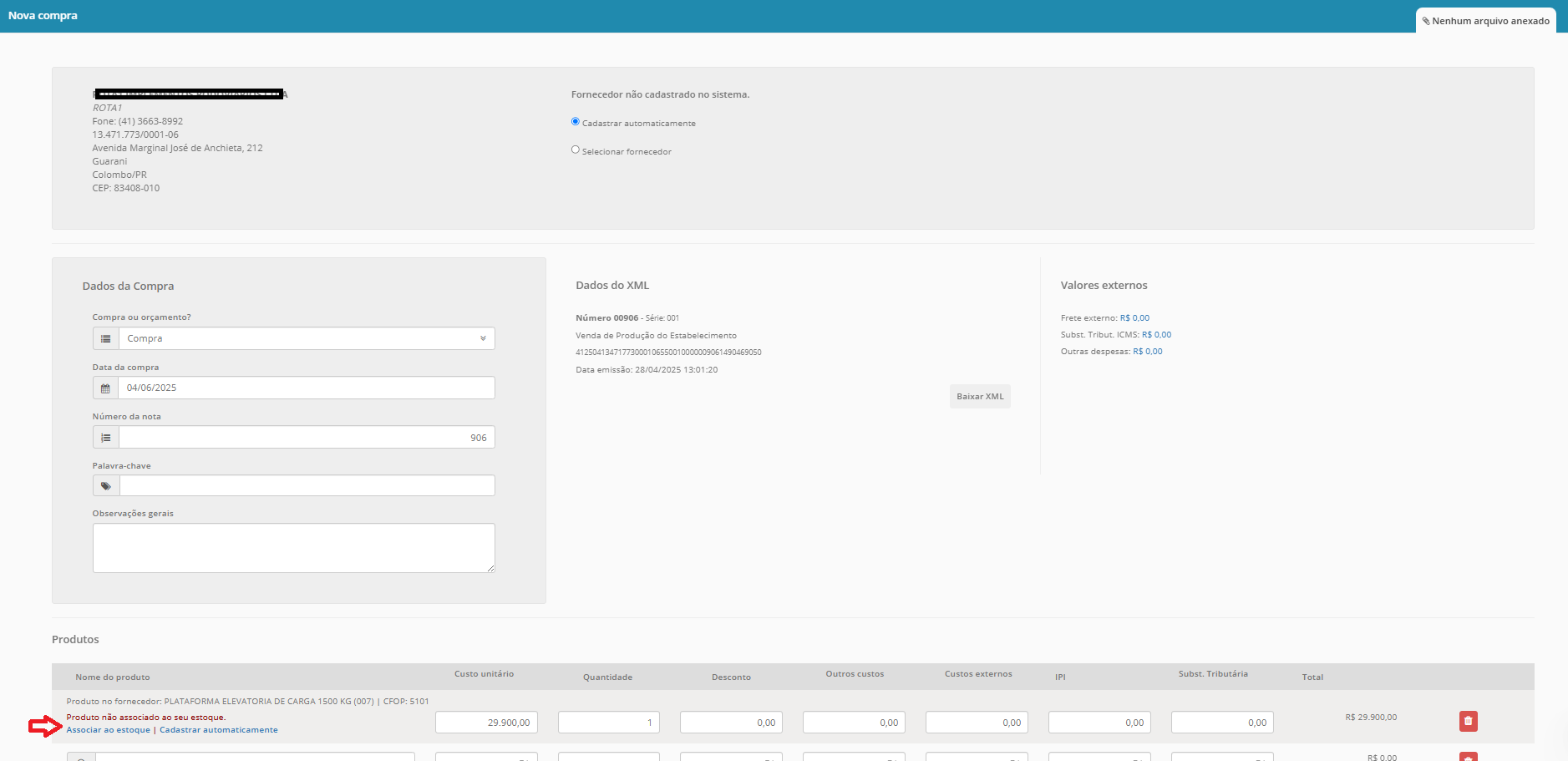 se quiser pode pedir para o sistema cadastrar automaticamente ou buscar um produto já cadastrado para associar.