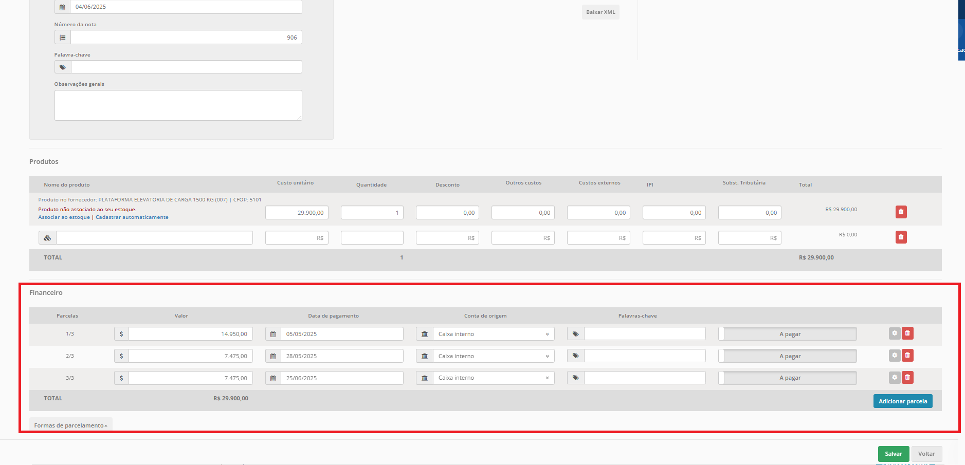verifique o financeiro e se estiver correto é só clicar em salvar que vai para o proximo passo