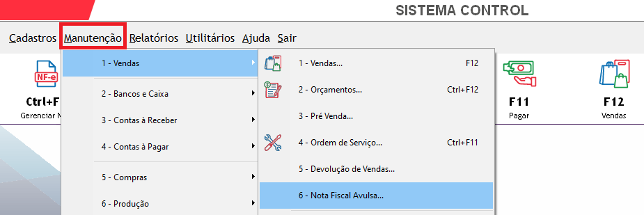 Existem situações que necessitam de emitir nota fiscal para necessidades especificas e portanto este caminho é a melhor rota para emitir nota personalizada ou fora do padrão, se faz necessário a utilização da nota avulsa. Manutenção - 1 - 6