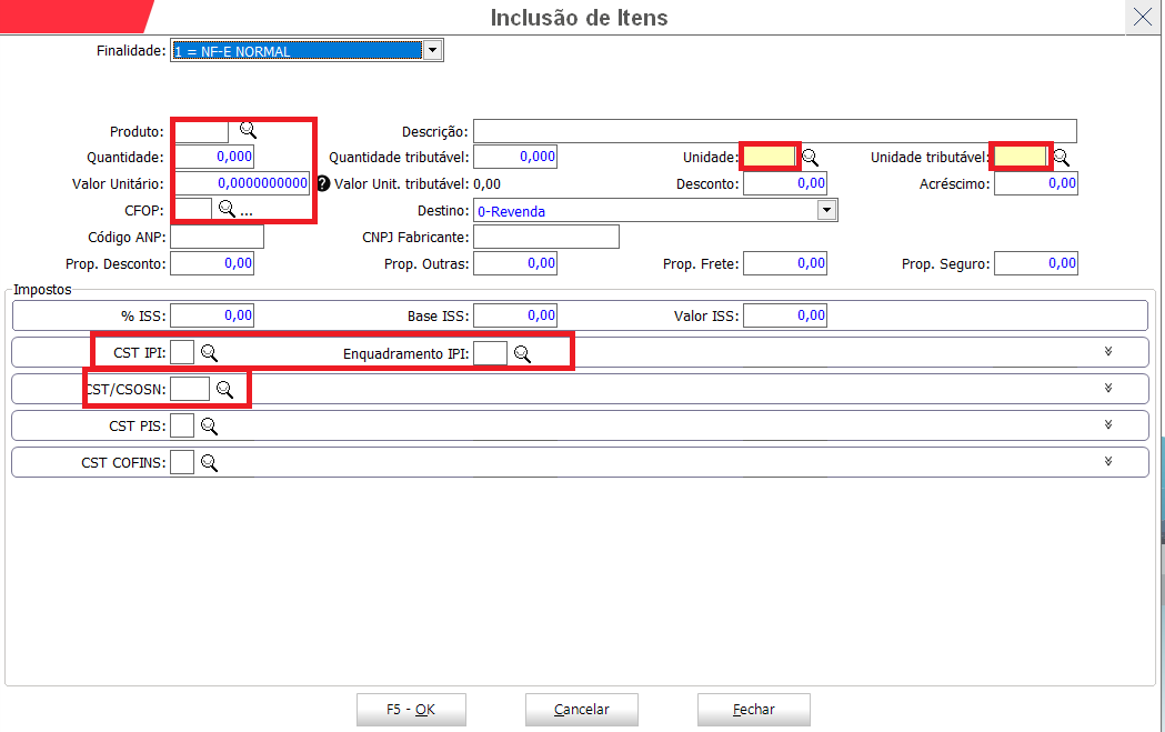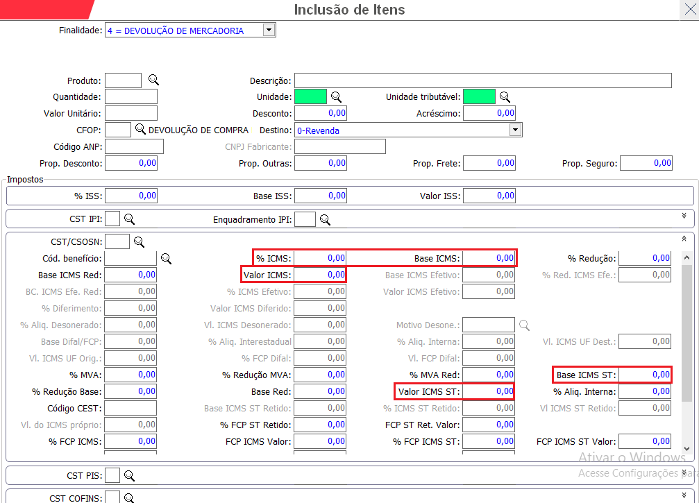 Ao informar o CST/CSOSN, outros campos serão liberados. Caso seja necessário, preencher os campos selecionados