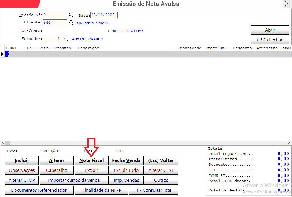 Obs: neste caso quando clicar na lupa cliente, cadastre o fornecedor como cliente para poder emitir nota avulsa.