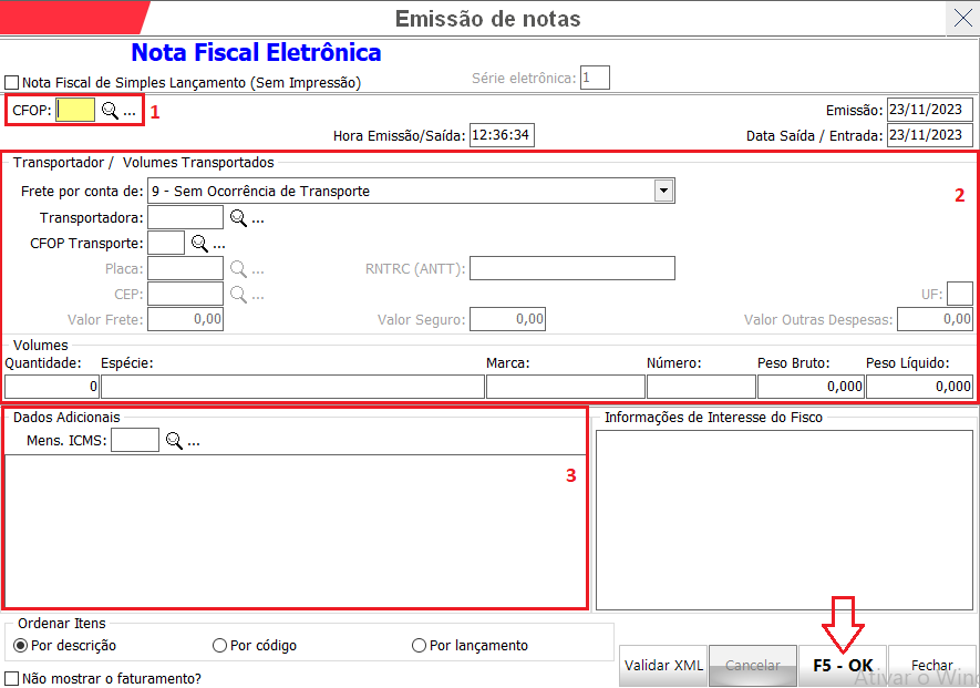 Vai abrir a tela de dados da nota para inserir informações importantes na emissão.