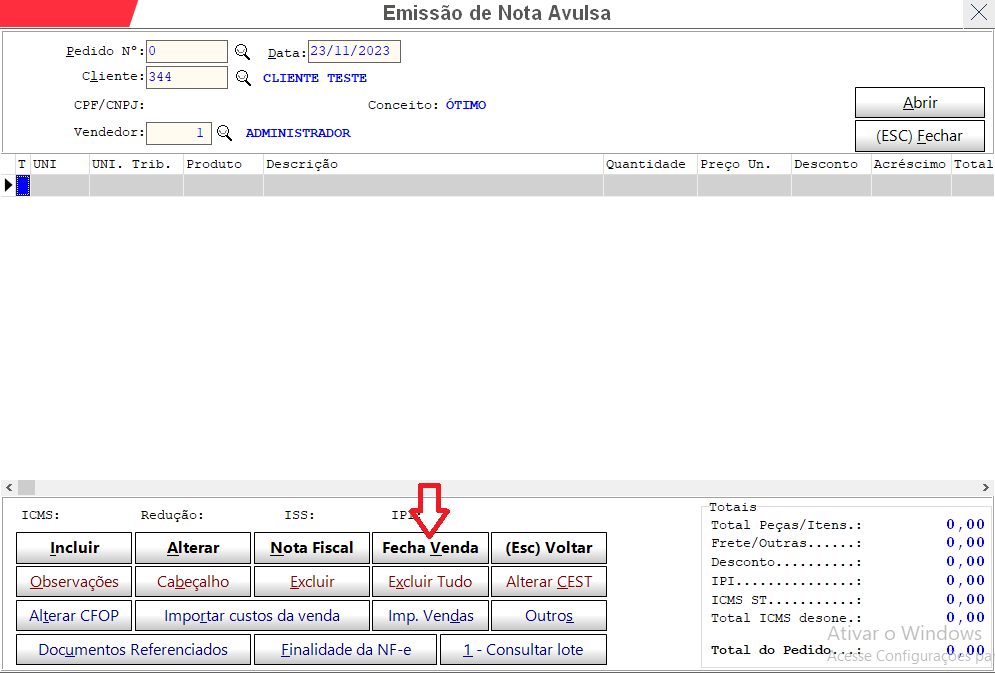Após imprimir e fechar a tela de visualização volte para tela principal e o pedido deverá ser finalizado apertando o botão FECHAR VENDA e depois confirme.