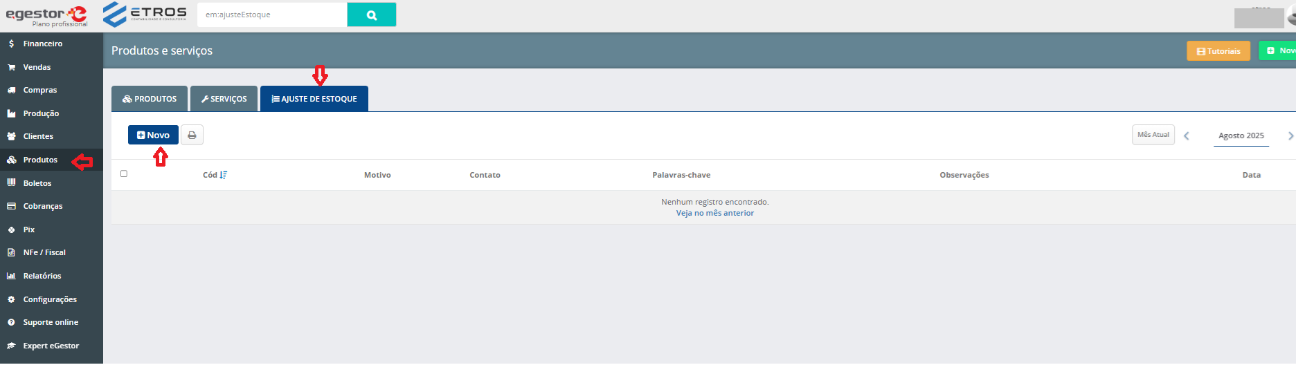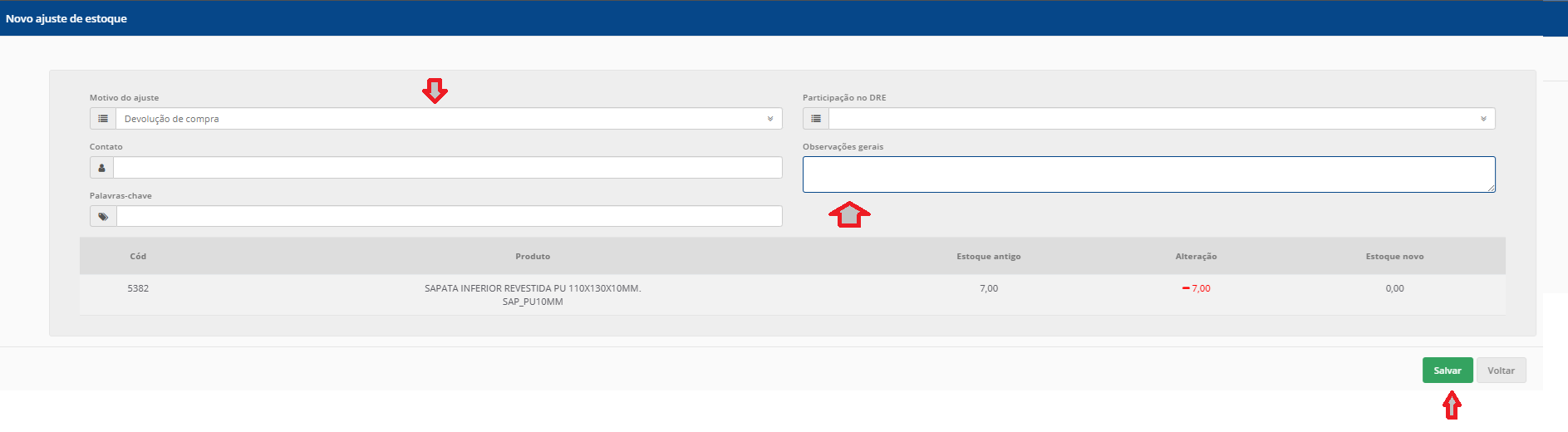 Após emitir uma nota fiscal de devoilução de compra o produto precisa ser baixado conforme passo a passo a seguir