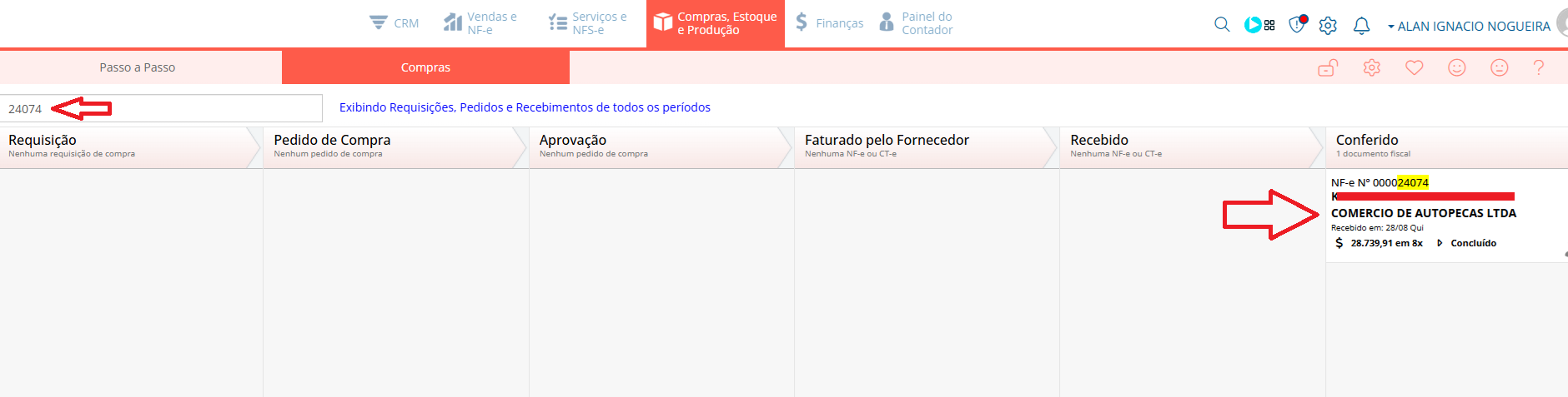 Encontre a nota e entre nela para poder desolver a mercadoria desejada